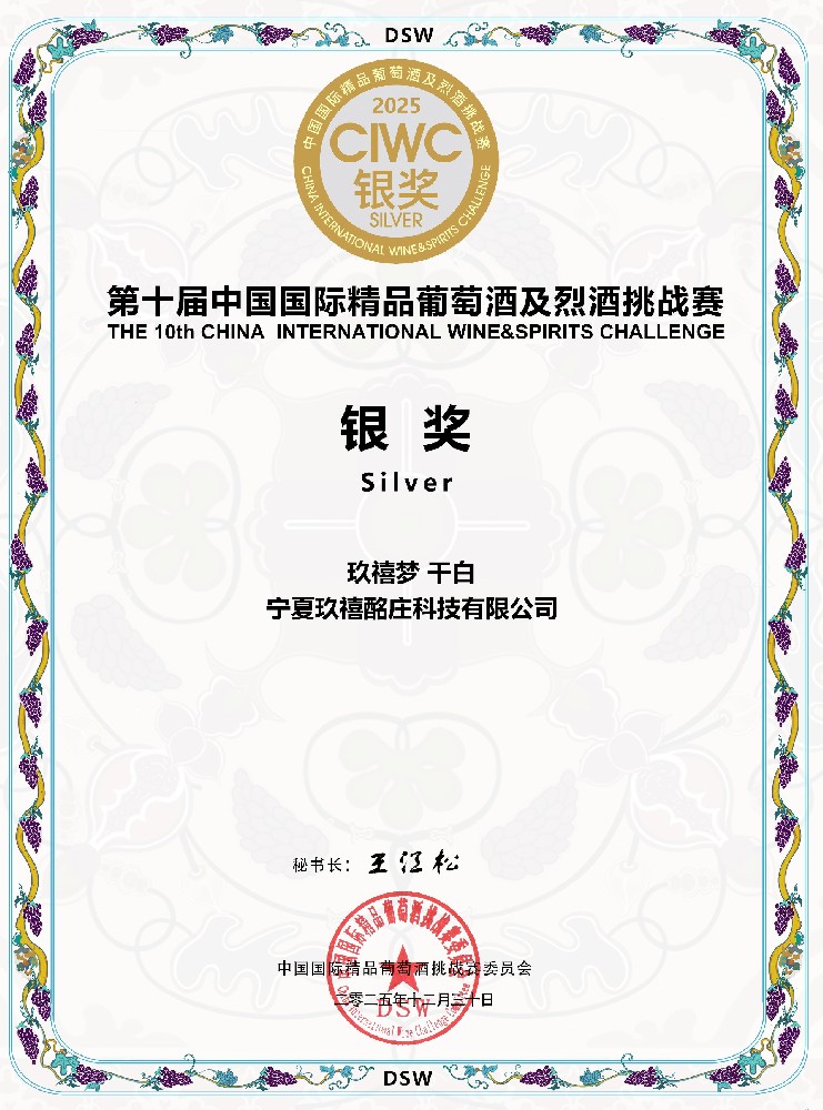 2025CIWC 中國(guó)國(guó)際精品葡萄酒及烈酒挑戰(zhàn)賽 玖禧夢(mèng)干白 銀獎(jiǎng) -