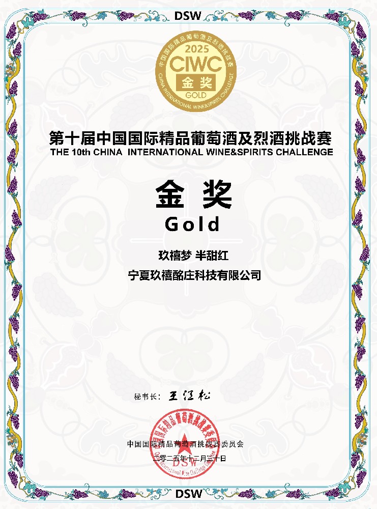 2025CIWC 中國(guó)國(guó)際精品葡萄酒及烈酒挑戰(zhàn)賽 玖禧夢(mèng) 半甜紅 金獎(jiǎng) -